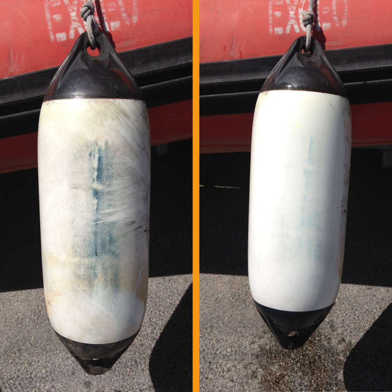 Il redonne un coup de neuf à vos pare-battage, souvent noircis par les frottements et les salissures portuaires. Il dégraisse, détache et ravive le blanc ou les couleurs sans altérer le plastique.