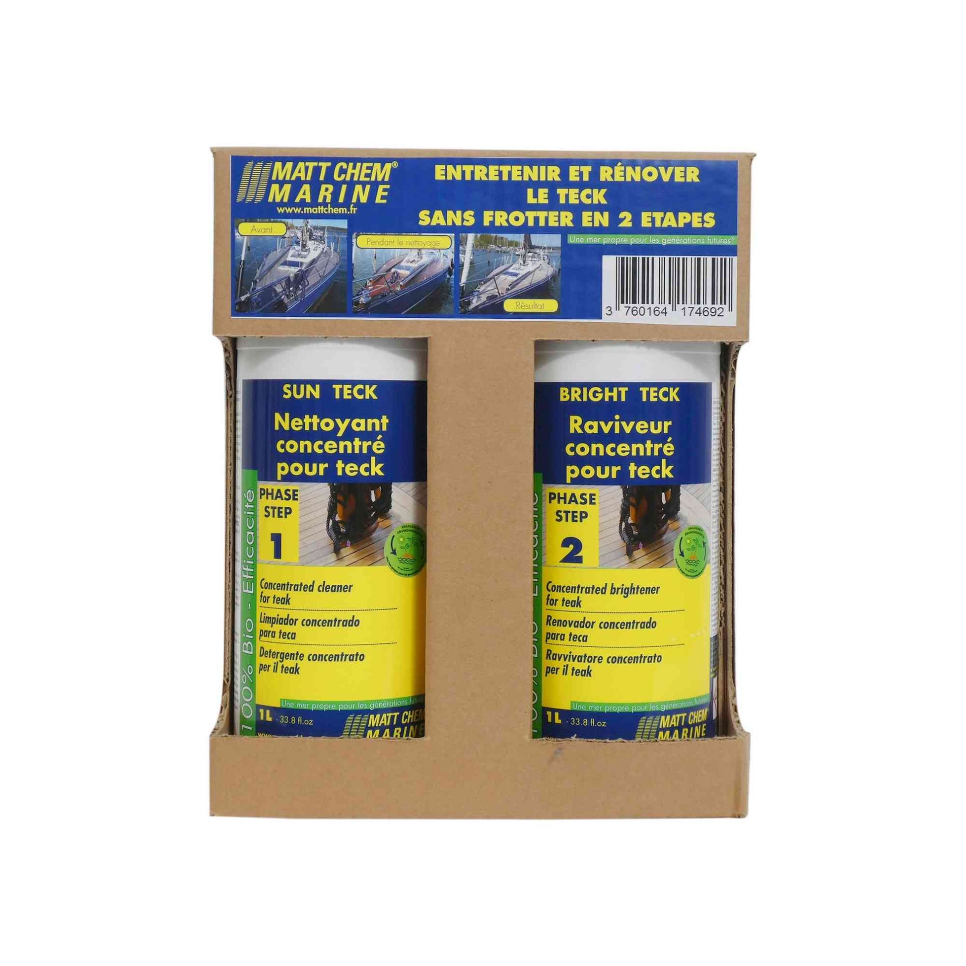 Le Kit Entretien Teck de Matt Chem Marine est la solution idéale pour nettoyer, restaurer et raviver le teck en deux étapes simples, sans besoin de ponçage. Il comprend :